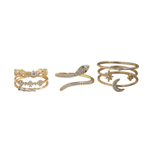 Timeless Gold Serpent Ring Set – A Mix of Unique Shapes
