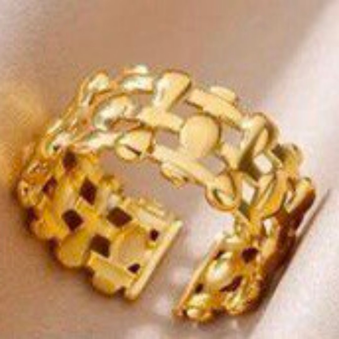 تجمع هذه الخواتم الذهبية الجذّابة بين التصميم العصري والمتانة بفضل صنعها من فولاذ مقاوم للصدأ يدوم دون بهتان. تتوافر بتسعة موديلات مختلفة لكل منها تصميم مجوّف يمنح الخاتم لمسة فريدة ولافتة. تناسب الرجال والنساء، وتأتي بالمقاس ٧ مع إمكانية التعديل لملاءمة مثالية. هي هدية أنيقة للمناسبات وتضيف جمالاً بسيطاً راقياً لأي إطلالة يومية