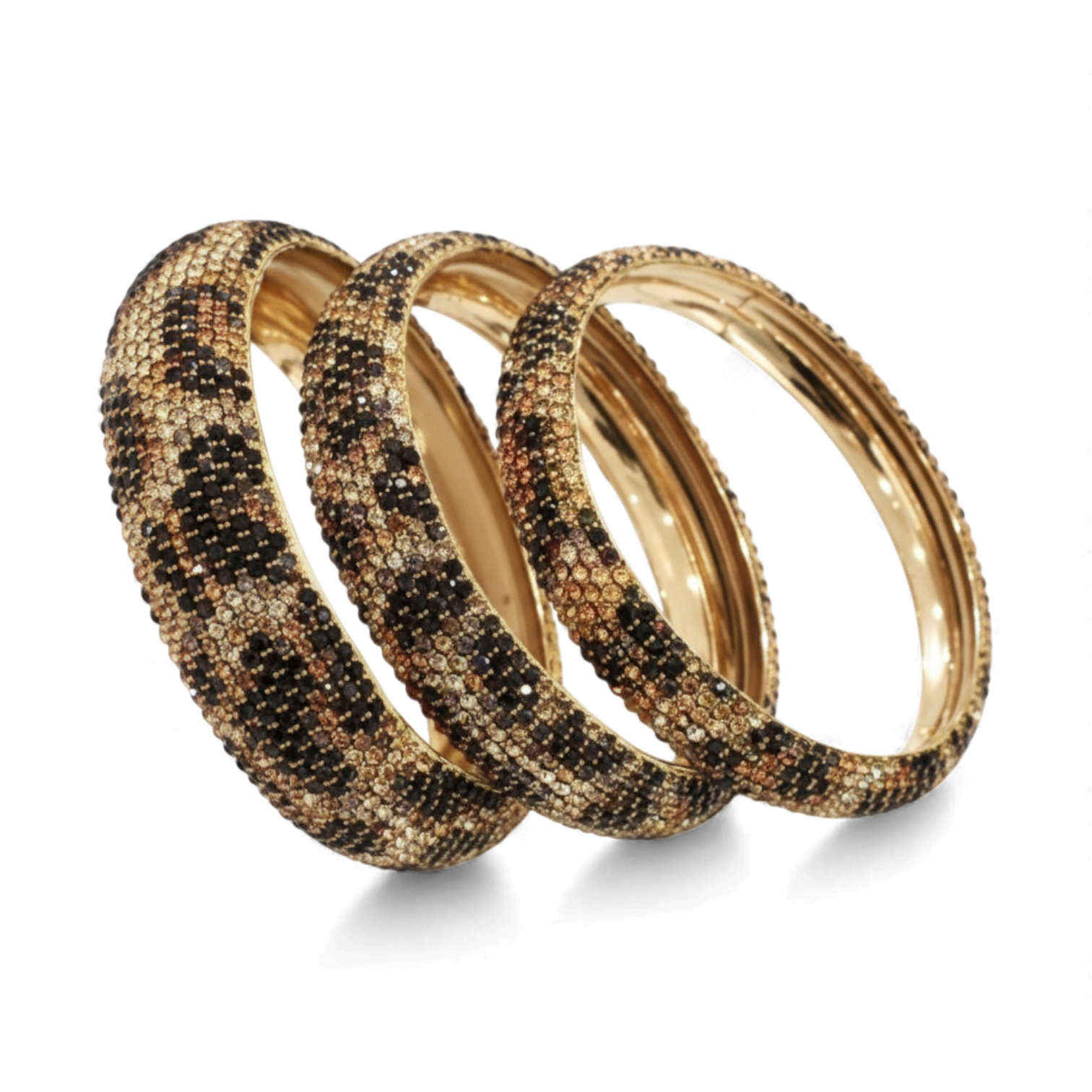 The Leopard Shine bangle set features three elegant bangles designed with a refined leopard-inspired touch. Crafted with a polished finish, this set balances bold character with timeless sophistication. Wear them stacked together for a striking statement or individually for a subtle hint of shine. Chic, versatile, and effortlessly stylish, this set elevates both everyday outfits and special-occasion looks.