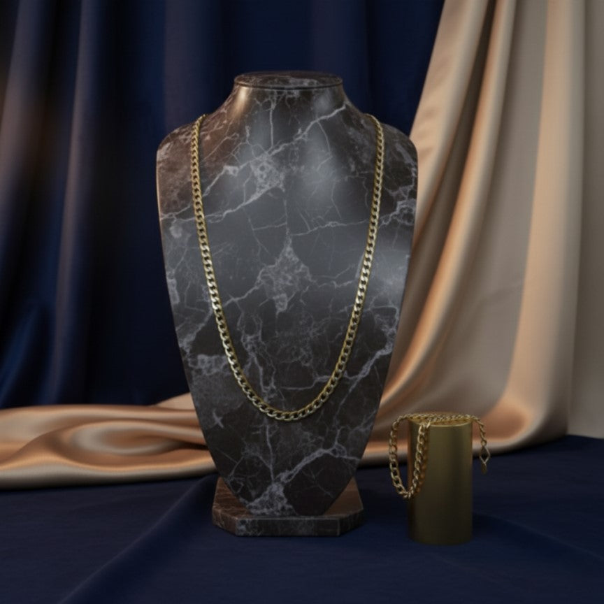 يمنحك طقم المجوهرات المضفّر بالفضي والذهبي – الموديل ١١ لمسة من الحيوية والأناقة المستوحاة من أجواء كرنفال البرازيل. يتكوّن الطقم من قلادة وسوار قابلين للتعديل، مزينين بحبيبات ملوّنة وبريق من السلاسل والزخارف التي تضيف لمسة مرحة وجذابة. الإغلاق المرن والقابل للتعديل يجعل ارتداءه مريحاً وسهلاً في جميع المناسبات. طقم مثالي لمن تبحث عن إطلالة مفعمة بالألوان والفرح ممزوجة بالأناقة والبساطة