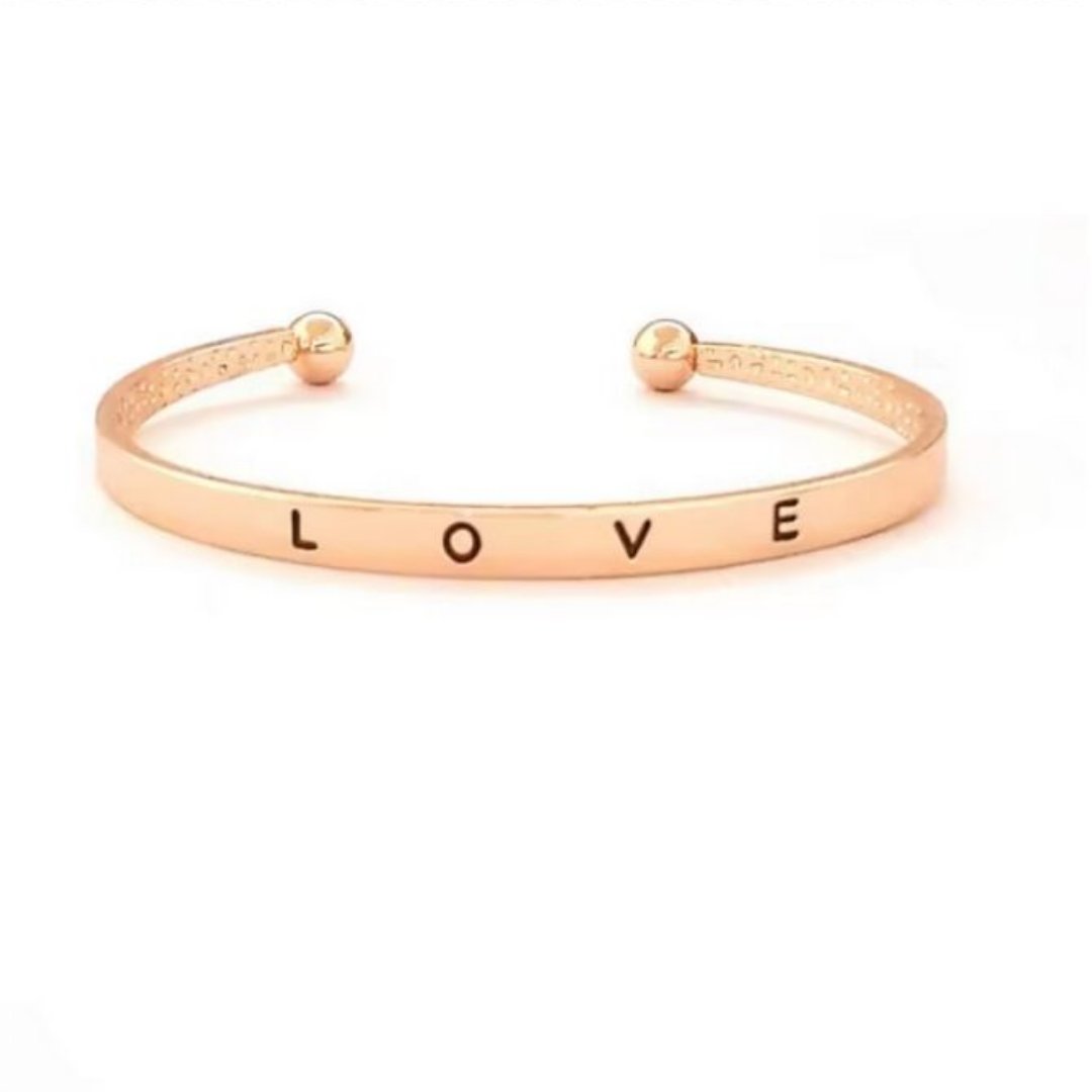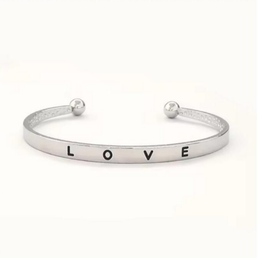 Celebrate elegance and sentiment with the Stylish Engraved Love Bracelet, crafted from high-quality zinc alloy for a refined and durable finish. Available in three beautiful colors, this bracelet adds a chic and meaningful touch to any outfit. Its adjustable design ensures a comfortable fit for any wrist size, making it a versatile accessory for everyday wear or special occasions. A perfect piece for women who appreciate fashionable jewelry with a heartfelt message.