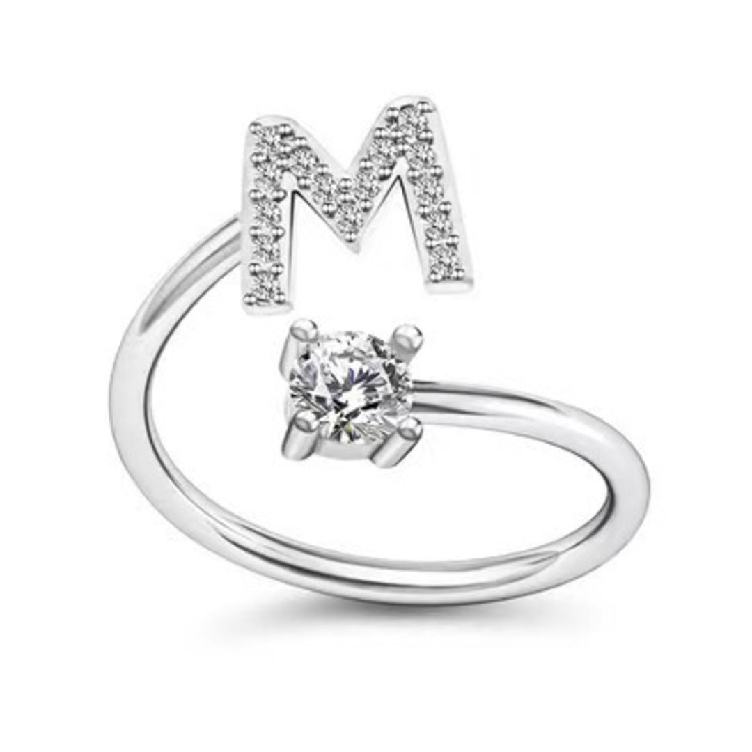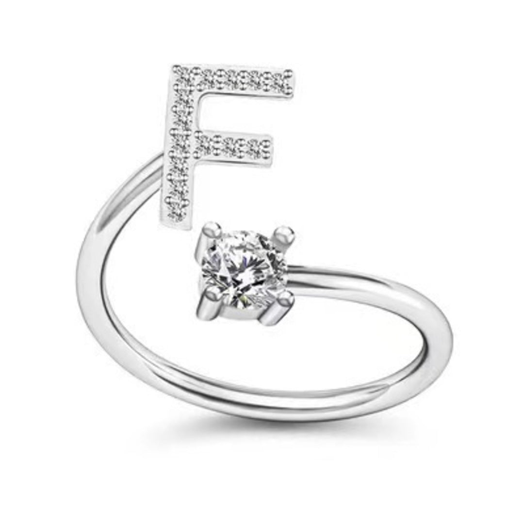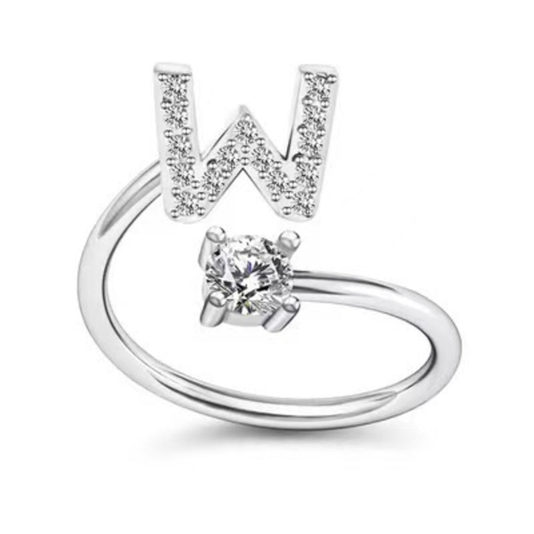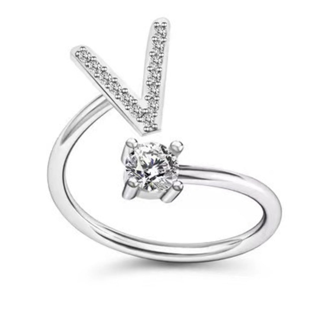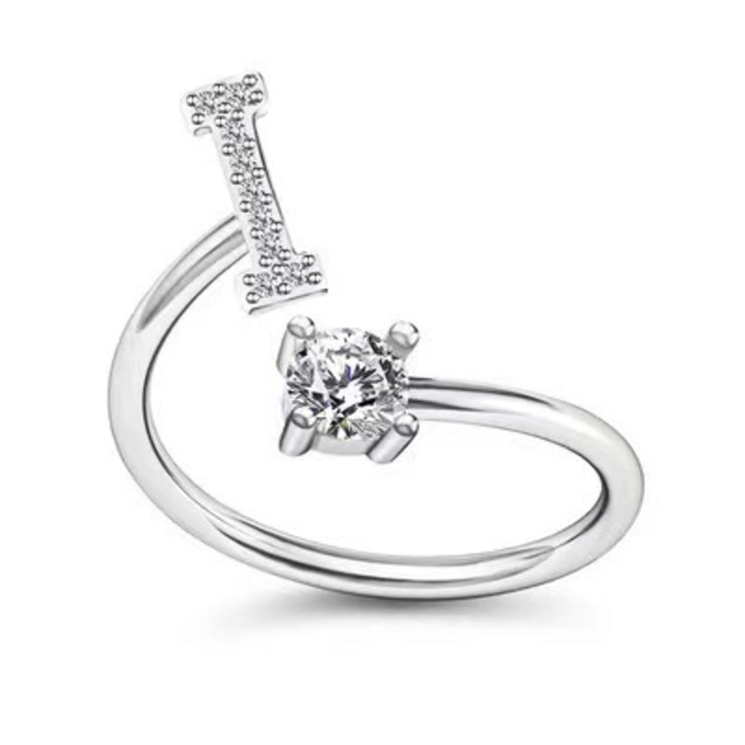Personalize your style with the Trendy Letter Ring, crafted from high-quality alloy and finished with a sleek silver plating. This elegant ring features sparkling princess-cut crystals and rhinestones that add a refined shine to its unique letter-shaped design.