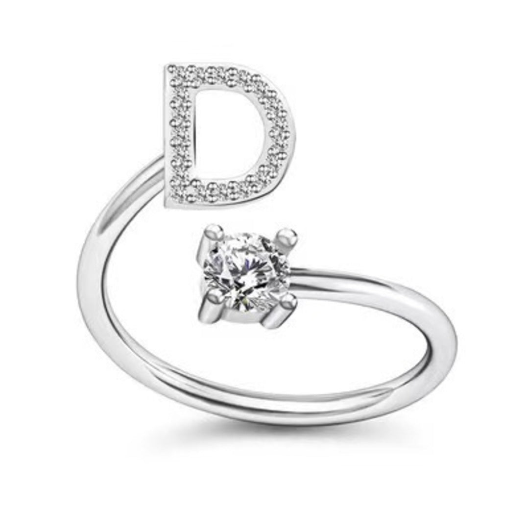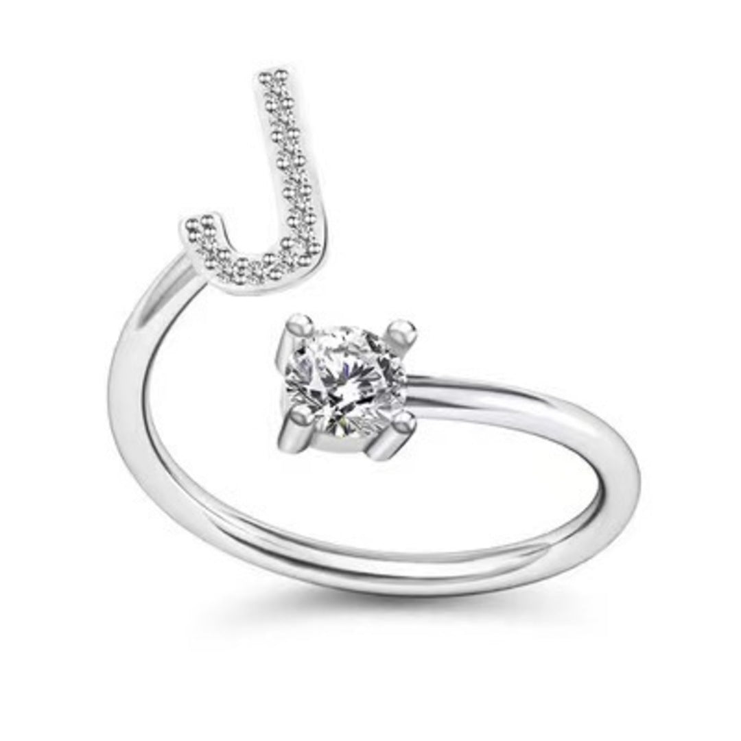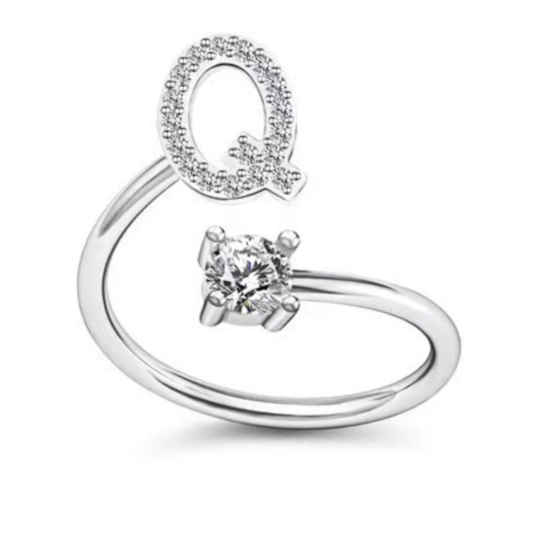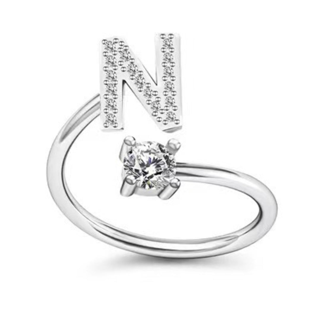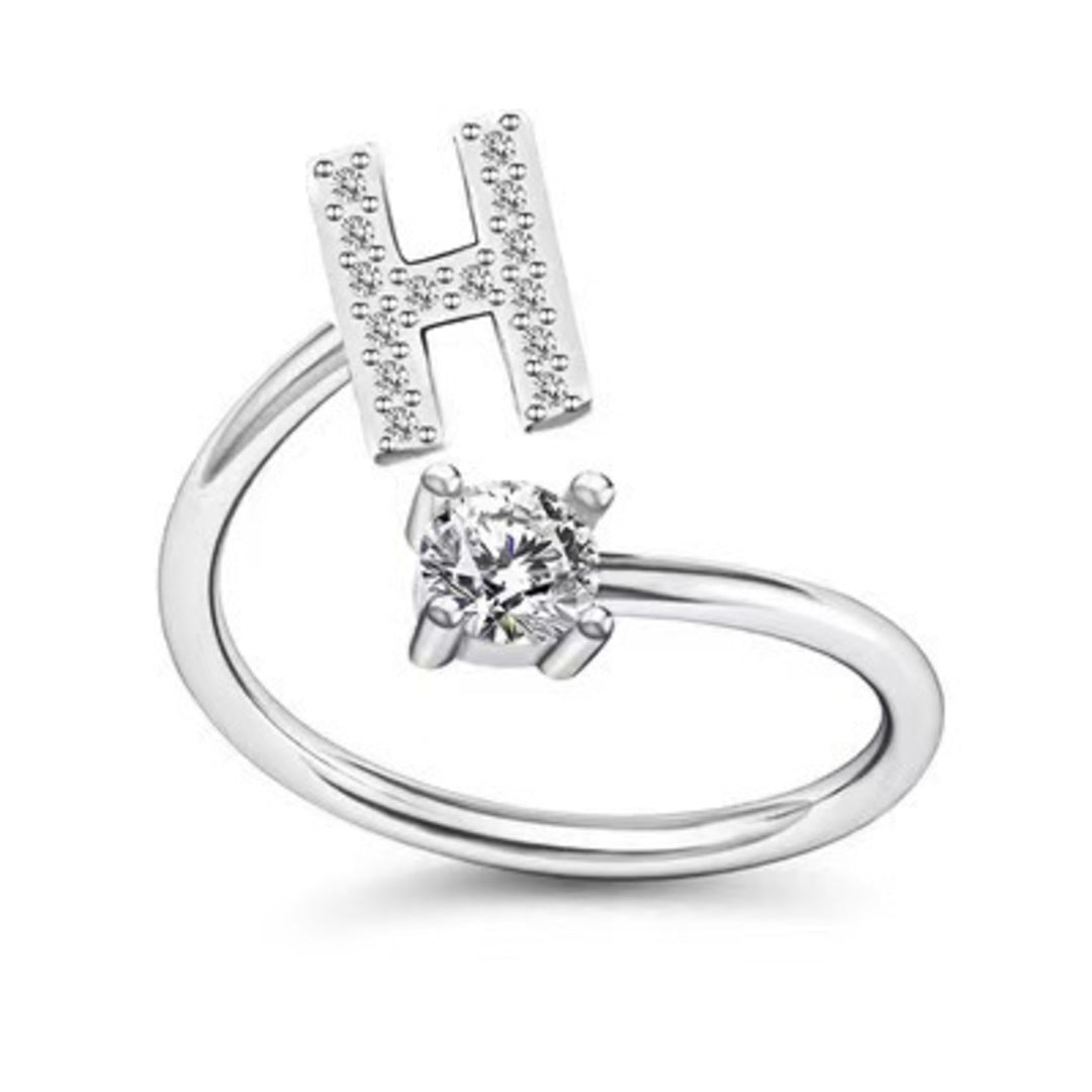 Personalize your style with the Trendy Letter Ring, crafted from high-quality alloy and finished with a sleek silver plating. This elegant ring features sparkling princess-cut crystals and rhinestones that add a refined shine to its unique letter-shaped design.