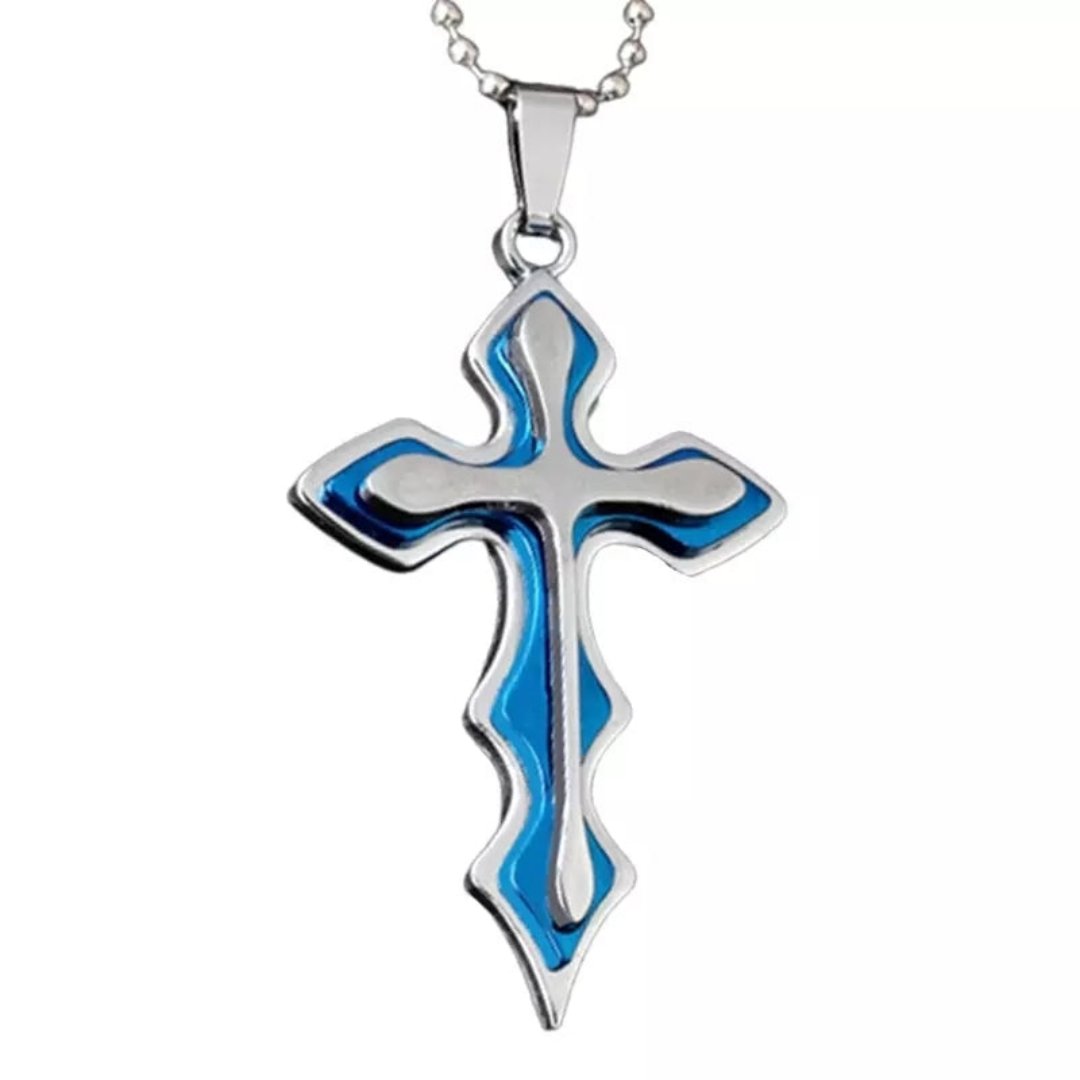 يمنحك عقد الصليب الأزرق الثلاثي المتموّج إطلالة مميّزة تجمع بين الأناقة والمعنى. مصنوع من سبيكة الزنك عالية الجودة، ويتميّز بتصميم صليب متموّج مع لمسات زرقاء لافتة تضيف له طابعًا فريدًا. تأتي السلسلة بحلقات متينة لضمان استخدام طويل المدى، كما أنّ تصميمه المحايد يجعله مناسبًا للرجال والنساء