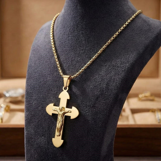 Statement Gold Crucifix Pendant